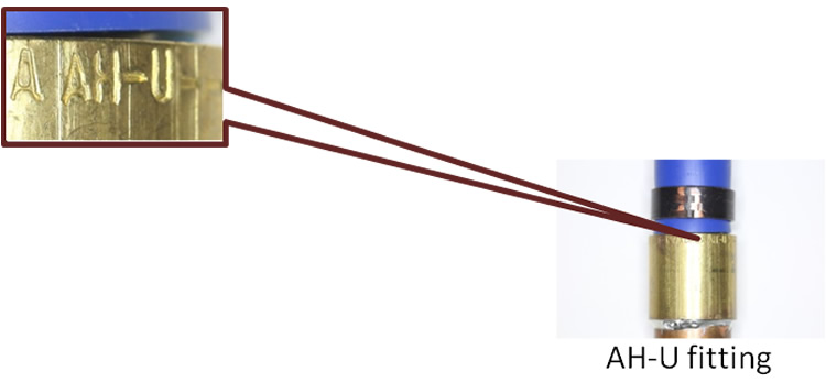 If you are making a Useful Life Claim under Part C of the Claim Form, and you are not submitting the fitting and pipe themselves, you must submit photographs that show all markings on the fittings, which fittings are secured by a black annealed copper crimp ring to Vanguard/Viega branded PEX pipe. Some examples include: